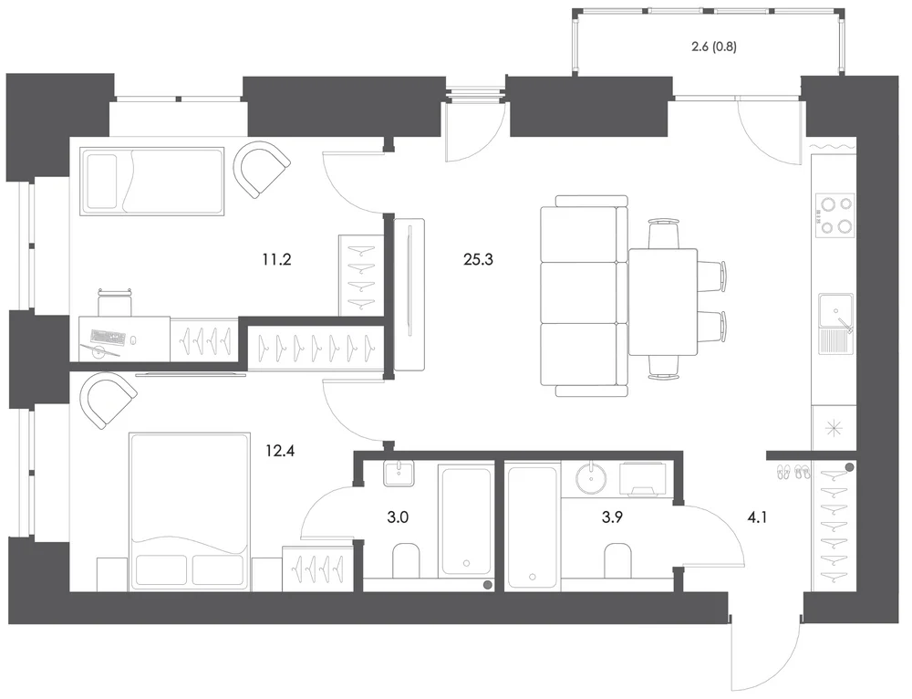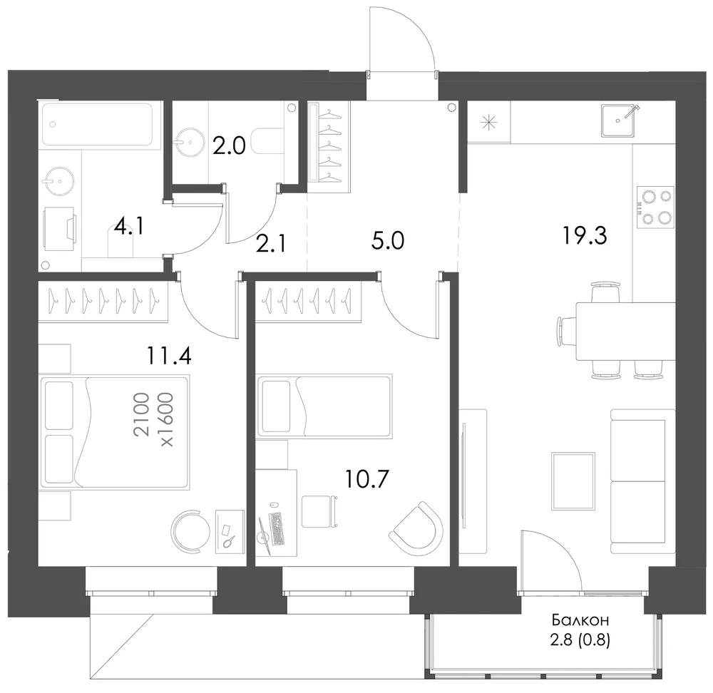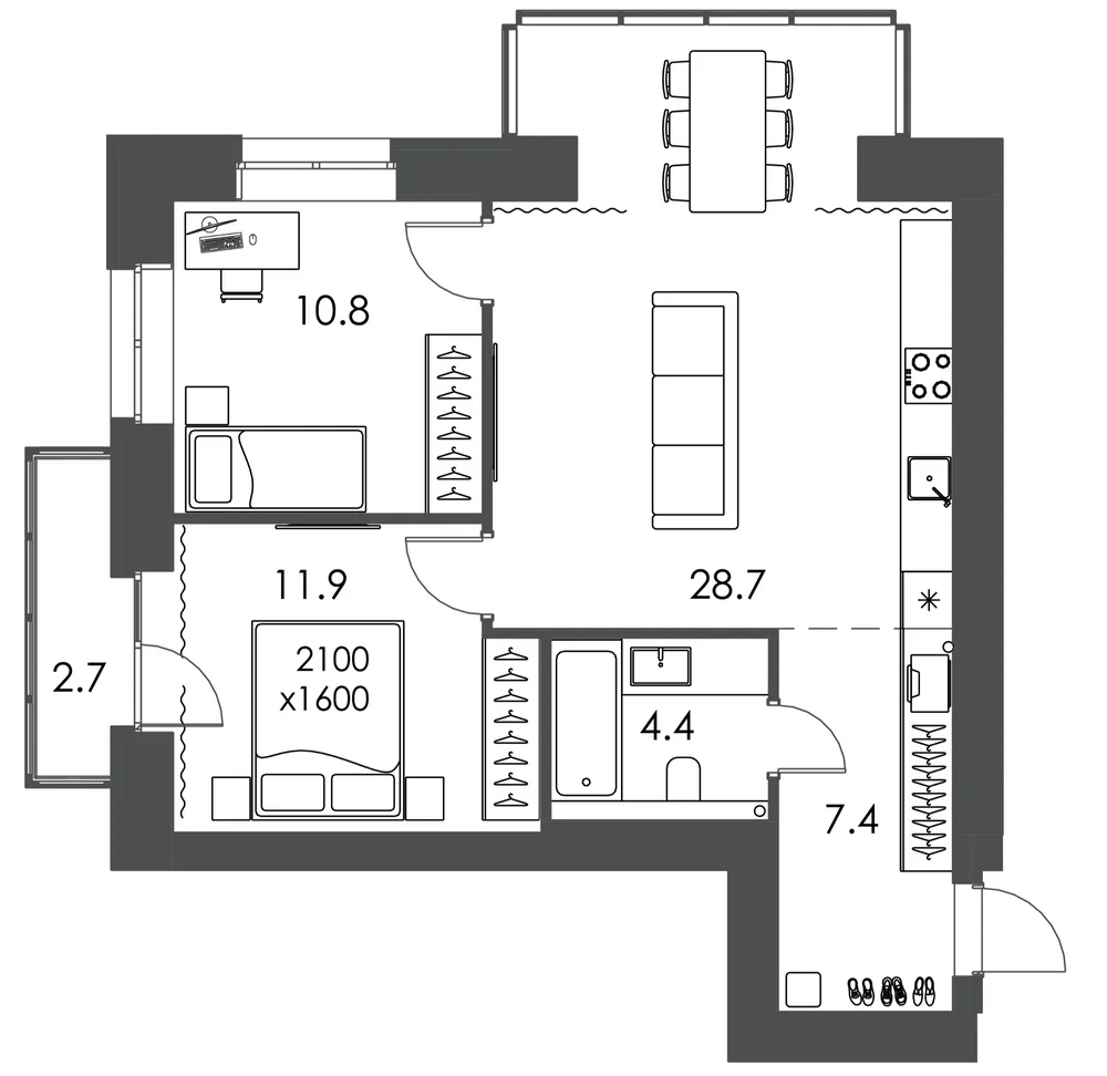 2-комнатная  63.9 м2